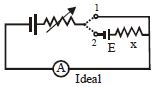 In the circuit shown the variable resistance is so adjusted that the ammeter reading is same in both the position $1$ and $2$ of the key. The reading of ammeter is $2A$. If $E = 20V$, then $x$ is :- ................... $\Omega$