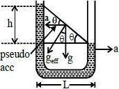 In a $U-$ tube, the liquid level stands at same level when it is at rest. When $U-$ tube is accelerated towards right, as shown in figure, the difference $h$ between level of two arms will be