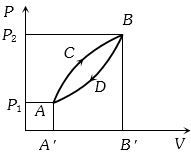 A thermodynamic system is taken from state $A$ to $B$ along $ACB$ and is brought back to $A$ along $BDA$ as shown in the $PV$ diagram. The net work done during the complete cycle is given by the area