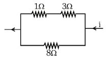 Power dissipated across the $8\,\Omega $ resistor in the circuit shown here is $2\, watt$. The power dissipated in watt units across the $3\,\Omega $ resistor is
