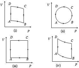 In the diagrams $(i)$ to $(iv)$ of variation of volume with changing pressure is shown. A gas is taken along the path $ABCD. $ The change in internal energy of the gas will be