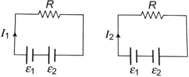 In order to determine the $e.m.f.$ of a storage battery it was connected in series with a standard cell in a certain circuit and a current $I_1$ was obtained. When the battery is connected to the same circuit opposite to the standard cell a current $I_2$ flow in the external circuit from the positive pole of the storage battery was obtained. What is the $e.m.f$. $\varepsilon_1$ of the storage battery? The $e.m.f$. of the standard cell is $\varepsilon_2$.