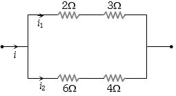 Hence $\frac{{{i_1}}}{{{i_2}}} = \frac{{{R_2}}}{{{R_1}}} = \frac{{10}}{5} = 2$