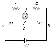In balanced condition $\frac{X}{6} = \frac{4}{6} \Rightarrow X = 4\,\Omega $