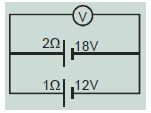 ($B$) The voltmeter will display $0 \mathrm{~V}$ at time $t=\ln 2$ seconds
