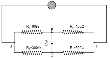 $=\frac{V}{4} \times 1=\frac{V}{4} \,\text { volt. }$