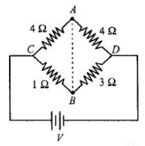 $\therefore \quad V_{A}-V_{B}=V_{C}-V_{B}-\left(V_{C}-V_{A}\right)=\frac{V}{4}-\frac{V}{2}=\frac{V}{4}$