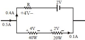 c If no current flows through the ammeter $(1),$ potential on the $20 \mathrm{\,W}$ resistance becomes $2 \mathrm{\,V}.$