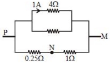 Current in $M N P=\frac{4}{1.25}=\frac{4 \times 4}{5}=\frac{16}{5} A$