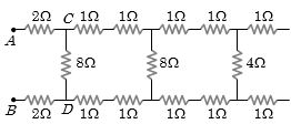 In the figure shown, the total resistance between $A$ and $B$ is ............. $\Omega$
