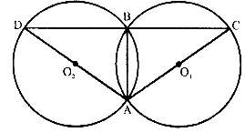 In the figure, AB is a common chord of the two circles. If AC and AD are diameters; prove that D, B, and C are in a straight line. $O_1$ and $O_2$ are the centers of two circles.