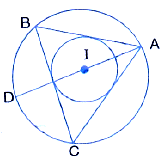 If I is the incentre of triangle ABC and AI when produced meets the circumcircle of triangle ABC in point D. If ∠BAC = 66° and ∠ABC = 80°. Calculate : ∠DBC