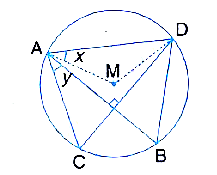 In the given figure, M is the centre of the circle. Chords AB and CD are perpendicular to each other. If ∠MAD = x and ∠BAC = y : express ∠AMD in terms of x.