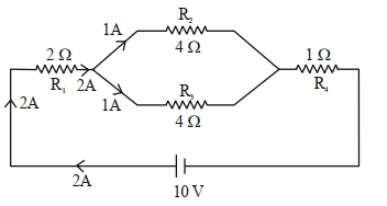 Current in resistance $\mathrm{R}_3=2 \times\left(\frac{4}{4+4}\right)$