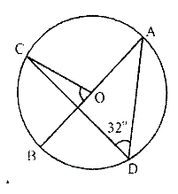 Arc AC subtends ∠AOC at the centre and ∠ADC at the remaining part Of the circle ∴ ∠AOC = 2 ∠ADC ⇒∠AOC = 2× 32° = 64° Since ∠AOC and ∠BOC are linear pair, we have ∠AOC + ∠BOC = 180° ⇒ 64° + BOC = 180° ⇒ ∠BOC = 180° ⇒ ∠BOC = 180° - 64° ⇒∠BOC = 116°