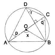 In the given figure, AC is a diameter of circle, centre O. Chord BD is perpendicular to AC. Write down the angles p, q and r in terms of x .