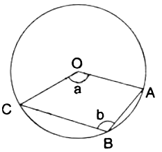 The figure given below, shows a circle with centre O. Given: ∠ AOC = a and ∠ ABC = b.