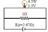A torch bulb rated as $4.5\, W, 1.5\, V$ is connected as shown in the figure. The $e.m.f.$ of the cell needed to make the bulb glow at full intensity is ............. $V$
