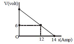 $10\, Cells$, each of $emf$ $'E'$ and internal resistance $'r'$, are connected in series to a variable external resistance. Figure shows the variation of terminal potential difference of their combination with the current drawn from the combination.$Emf$ of each cell is ................ $V$