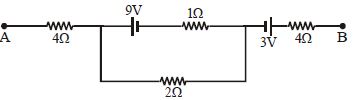 In the circuit shown in figure, potential difference between points $A$ and $B$ is $16\, V$. The current passing through $2\,\Omega $ resistance will be ................. $\mathrm{A}$