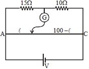 In the meter bridge shown, the length $AB$ for which the deflection in galvanometer is zero will be ............. $cm$