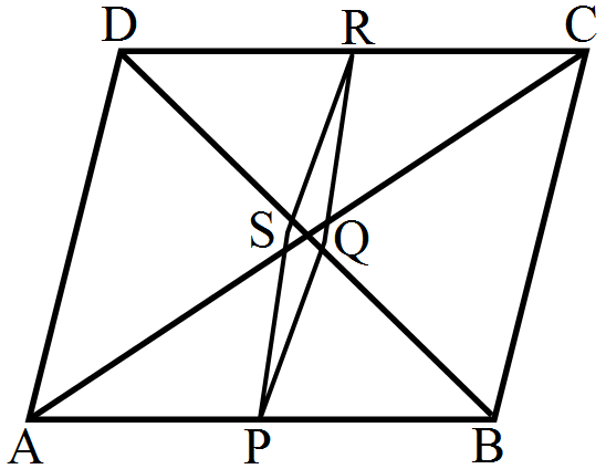 ABCD is a parallelogram in which P is the midpoint of DC and Q is a point on AC such that $\text{CQ}=\frac{1}{4}\text{AC}.$ If PQ produced meets BC at R, prove that R is the midpoint of BC.