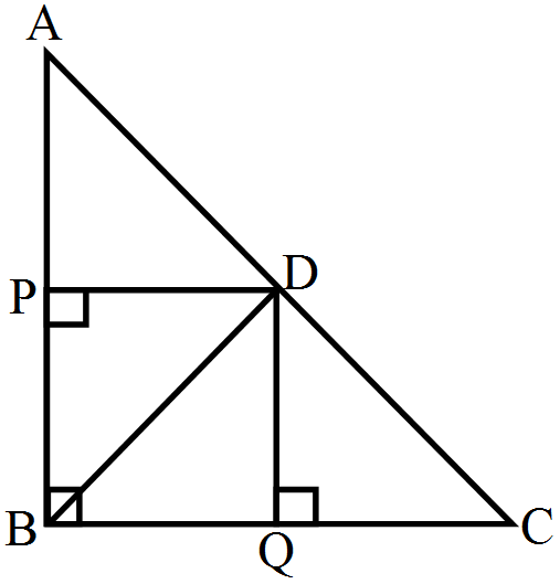 In a right triangle $ABC,$ right-angled at $B, D$ is a point on hypotenuse such that $\text{BD}\perp\text{AC}.$ If $\text{DP}\perp\text{AB}$ and $\text{DQ}\perp\text{BC}$ then prove that.