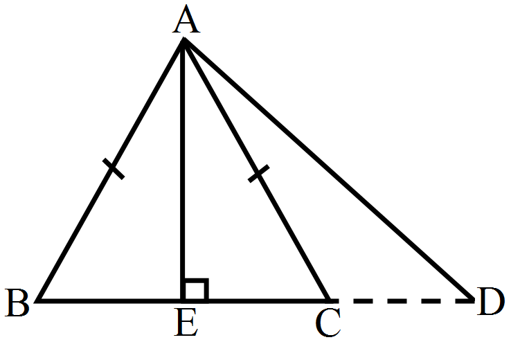 In $\triangle\text{ABC},\text{AB}=\text{AC}.$ Side BC is produced to D. prove that