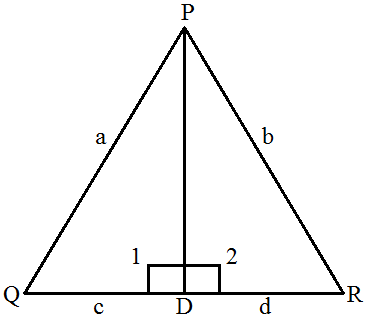 In $\triangle\text{PQR},\text{PD}\perp\text{QR}$ such that D lies on QR. If PQ = a, PR = b, QD = C and DR = d, prove that (a + b)(a - b)=(a + b)(c - d).