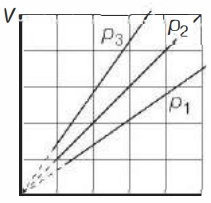 The state of an ideal gas was changed isobarically. The graph depicts three such isobaric lines. Which of the following is true about the pressures of the gas?