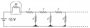 A light bulb of resistance $R=16 \,\Omega$ is attached in series with an infinite resistor network with identical resistances $r$ as shown below. A $10 \,V$ battery drives current in the circuit. ............. $\Omega$ the value of $r$ such that the bulb dissipates about $1 \,W$ of power.