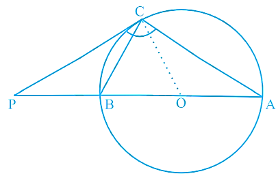 किसी वृत्त की बिंदु $C$ पर खींची गई स्पर्श रेखा और व्यास $AB$ बढ़ाने पर बिंदु $P$ पर प्रतिच्छेद करते हैं। यदि $\angle \text{PCA} = 110^o$ है, तो $\angle \text{CBA}$ ज्ञात कीजिए $($देखिए आकृति$)$।