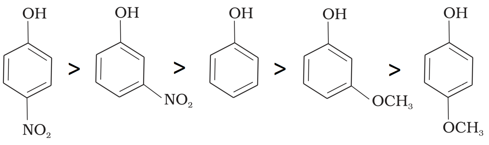 $-NO_2$ is an electron withdrawing group which increases the acidity of phenol and the effect is more pronounced at ortho and para positions. Similarly methoxy group is an electron releasing group which decreases the acidity of phenol and the effect is more pronounced at ortho and para positions.