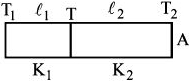 One end of a thermally insulated rod is kept at a temperature $T_1$ and the other at $T_2$ . The rod is composed of two sections of length $l_1$ and $l_2$ and thermal conductivities $K_1$ and $K_2$ respectively. The temperature at the interface of the two section is