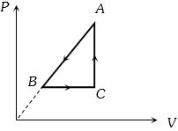 $P-V$ diagram of a cyclic process $ABCA$ is as shown in figure. Choose the correct statement