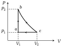 Carbon monoxide is carried around a closed cycle $abc$ in which bc is an isothermal process as shown in the figure. The gas absorbs $7000 J$ of heat as its temperature increases from $300 K$ to $1000 K$ in going from $a$ to $b$. The quantity of heat rejected by the gas during the process $ca$ is ..... $J$