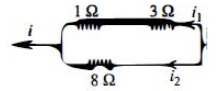 Current through $R_{1}$ is $i_{1}=\frac{i \times R_{2}}{R_{1}+R_{2}}=\frac{i \times 8}{12}=\frac{2 i}{3}$