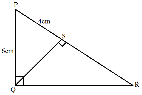 PQR is a right triangle right anmgled at Q and $\text{QS}\perp\text{PR}.$ If PQ = 6cm and PS = 4cm, find QS, RS and QR.