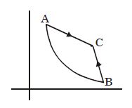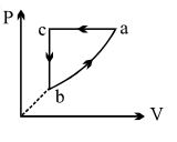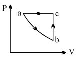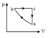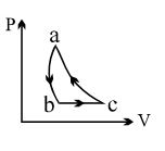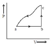 A sample of an ideal gas is taken through the cyclic process $abca$ as shown in the figure. The change in the internal energy of the gas along the path $ca$ is $-180\, J$. The gas absorbs $250\, J$ of heat along the path $ab$ and $60\, J$ along the path $bc$. The work done by the gas along the path $abc$ is ..... $J$