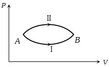 A system goes from $A$ to $B$ via two processes $I$ and $II$ as shown in figure. If $\Delta {U_1}$ and $\Delta {U_2}$ are the changes in internal energies in the processes $I$ and $II$ respectively, then