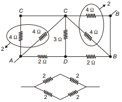 Resistance across $A B$ as shown in figure is ............. $\Omega$