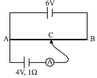 $A \,6 \,V$ battery of negligible internal resistance is connected across a uniform wire of length $1\, m$. The positive terminal of another battery of emf $4\,V$ and internal resistance $1\, \Omega$ is joined to the point $A$ as shown in figure. The ammeter shows zero deflection when the jockey touches the wire at the point $C$. The $AC$ is equal to