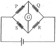 Resistances are arranged in a cyclic order to form a balanced wheatstone bridge as shown in figure. Ratio of power consumed in the branches $P + Q$ and $R + S$ is