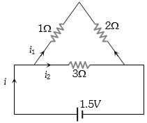 Resistors of $1$, $2$, $ohm$ are connected in the form of a triangle. If a $1.5\, volt$ cell of negligible internal resistance is connected across $3\, ohm$ resistor, the current flowing through this resistance will be ................ $amp$