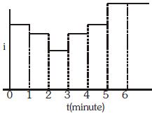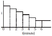 Say switches $S_1, S_2$ and so on upto $S_6$ are closed, one after other in order (first $S_1$, then $S_2$) at regular intervals of $1$ minute starting from $t = 0$. The graph of current versus time is best represented as