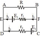 or $\mathrm{E}_{1}-\left(\mathrm{i}_{1}+\mathrm{i}_{2}\right) \mathrm{R}-\mathrm{i}_{1} \mathrm{r}_{1}=0$