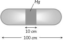 A horizontal uniform glass tube of $100 \,cm$, length sealed at both ends contain $10 \,cm$ mercury column in the middle. The temperature and pressure of air on either side of mercury column are respectively $81°C$ and $76\, cm$ of mercury. If the air column at one end is kept at $0°C$ and the other end at $273°C$, the pressure of air which is at $0°C$ is (in $cm$ of $Hg$)