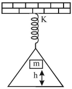 A load of mass $m$ falls from a height $h$ on to the scale pan hung from the spring as shown in the figure. If the spring constant is $k$ and mass of the scale pan is zero and the mass $m$ does not bounce relative to the pan, then the amplitude of vibration is
