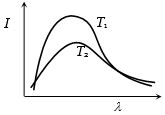 There fore I-$\lambda$ graph for $T2$ have lesser wavelength (?m) and so curve for $T2$ will shift towards left side.