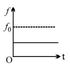 Source and observer both start moving simultaneously from origin, one along $x-$axis and the other along $y-$axis with speed of source = twice the speed of observer. The graph between the apparent frequency observed by observer $f$ and time $t$ would approximately be :